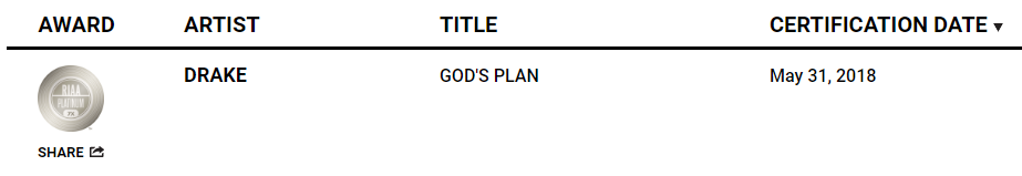Em nova atualização da RIAA então, o som conquistou seu sétimo certificado de platina, que simboliza o equivalente a 7 milhões de unidades comercializadas em solo americano. “God’s Plan” ainda permanece presente na sua playlist?