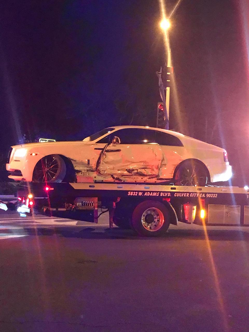 O relatório diz que a polícia local atendeu um chamado às 2h42 da manhã sobre um acidente em que um Rolls Royce branco onde o autor do hit “Pyscho” estava tinha se chocado contra cerca e outro carro, bloqueando estrada. Felizmente, nada aconteceu com o artista, e imagens divulgadas na web mostram o seu veículo bem danificado, e também ele conversando com autoridades enquanto fumava cigarro.